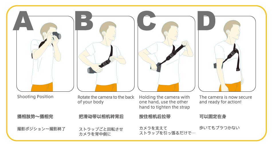 日本DIAGNL忍者相機帶, 斜孭設計, 可極速影相