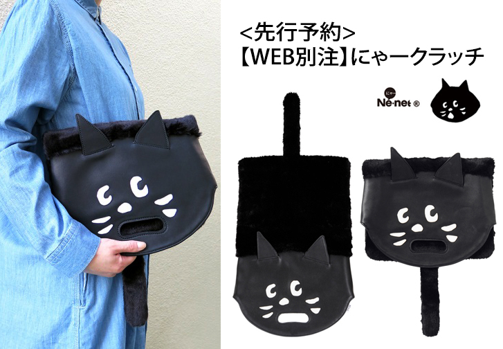 Ne-net Nya Head Clutch Bag 貓頭手袋, 除左有Ne-net 貓個樣之外, 仲有條毛毛尾架, Web 限定版, 日本先行預訂中, 預計10月中發送, 查詢及訂購可 聯絡我們